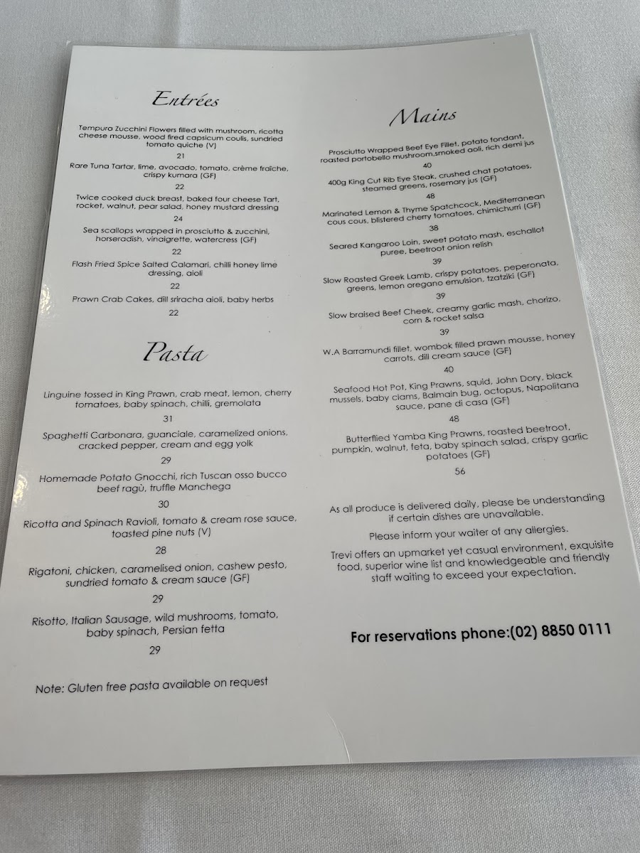 Introducing Trevi Lakeside, a charming Italian restaurant nestled in Norwest, NSW. This culinary gem offers a delightful blend of traditional Italian flavors and contemporary dishes, ensuring an unforgettable dining experience. With a menu that delights the senses, guests can indulge in a sumptuous selection of entrees, mains, and exquisite desserts.